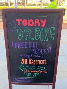 This session would not have been made possible without the help of Biko Bikes, who kindly lent their workshop space to Bee Pedal Ready. Biko Bikes is a student led cooperative that prioritizes affordable, accessible and sustainable travel. They offer affordable bike repairs to staff and students and are based in the basement of the Students’ Union.